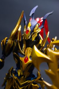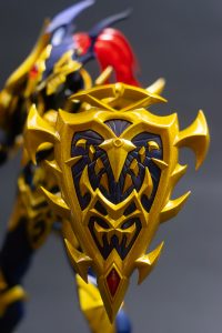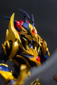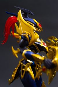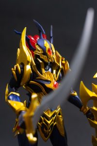 Luster Dragon es una figura imponente, reinterpretada desde el model kit original de Bandai. Con una altura aproximada de 17 cm y un peso de 320 gramos incluyendo su base, este modelo fabricado en plástico ABS y policarbonato representa una fusión perfecta entre diseño mecánico y estética ceremonial. Su estructura articulada permite una gran variedad de poses, e incluye espada curva y escudo ornamentado como parte del kit base.