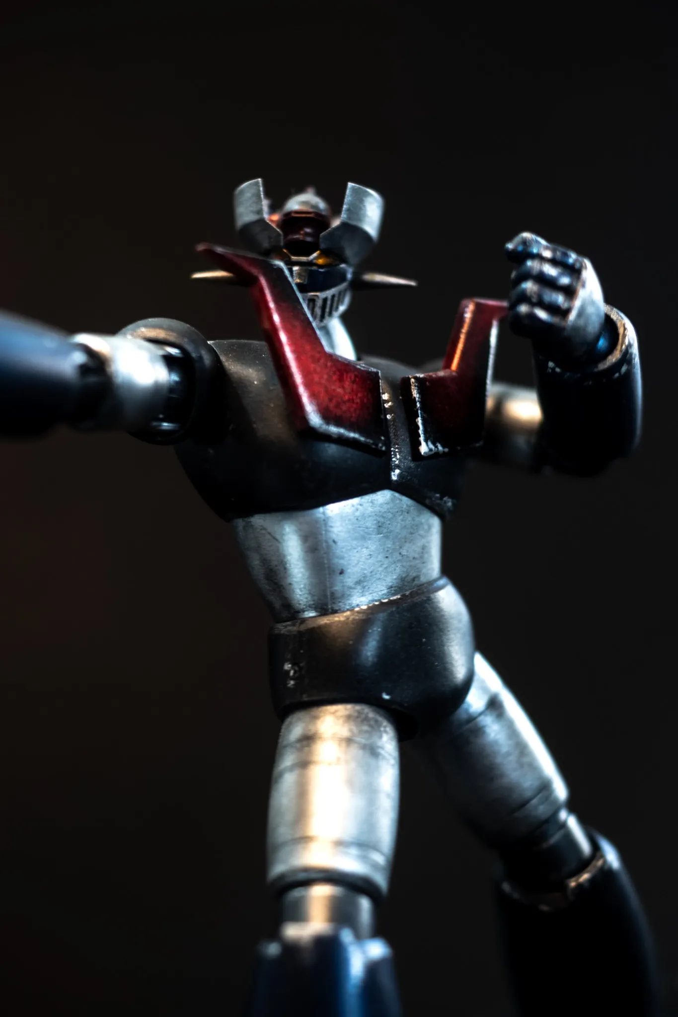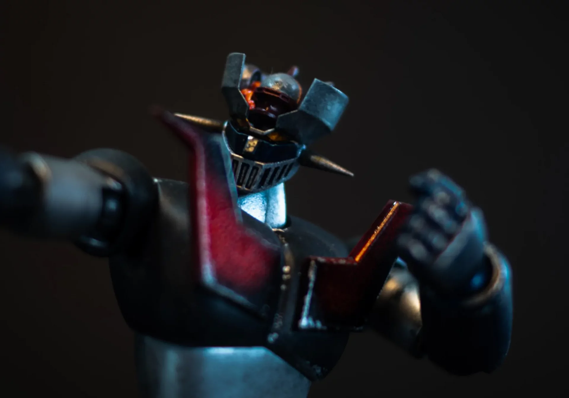 Mazinger Z ha sido muchas cosas: símbolo, ídolo, máquina invencible. Pero en esta pieza, EOX lo transforma en algo más profundo: una figura que ha sobrevivido. Aquí no hay perfección de fábrica ni brillo de vitrina. Lo que vemos es un robot herido, con la pintura desgastada, el cuerpo marcado, las extremidades rasgadas por el combate.