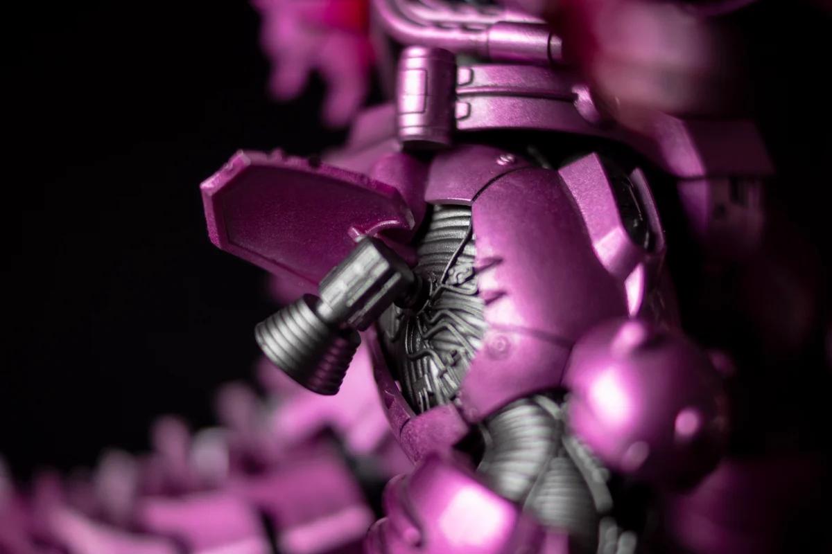 Esta versión de Mechagodzilla rompe con la rigidez de su origen industrial. La intervención no busca ocultar su estructura, sino potenciarla a través del contraste: el rosa se impone como una anomalía estética, como una capa de identidad sobre el metal. Ya no es solo una máquina: es un manifiesto visual que irrumpe donde antes solo había función.