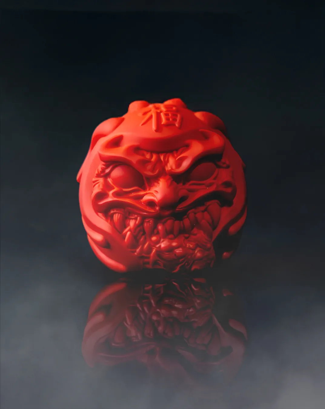 Spooky lo volvió a hacer: una reinterpretación brutal del tradicional Daruma japonés en clave monstruosa, tensa y profundamente simbólica. El Putrid Daruma Devourer no es solo una figura de vinilo suave, es un tótem de contradicciones: suerte y rabia, tradición y ultraviolencia.